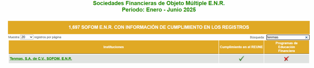 Tenmas, S.A. de C.V., SOFOM, E.N.R.